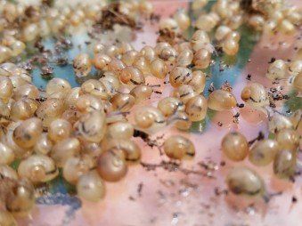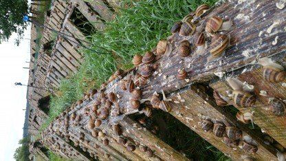 Nous produisons plus d'un million de naissains (bébés escargots) par an. 500 000 sont élevés sur les 1800 m² de parc et l'autre moitié est vendue. Nos escargots sont nourris avec un aliment spécifique composé de farine de céréales, de minéraux et de calcaire pour leur bonne croissance.